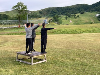 体操係のリハーサル?いえ、早く集合したので、3人で遊んでいます。
