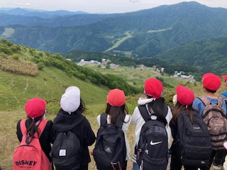 頂上から、宿舎で待機している友達に向かって、名前を呼びました。