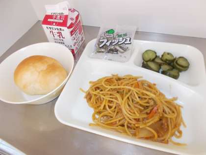 3年生、パンでカレースパゲッティのお皿をきれいに拭いて食べていた人もいました。