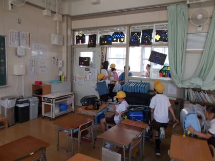 引き渡し訓練にご参加いただきありがとうございました。今年は運動場ではなく、雨天の場合でも対応できるように教室での引き渡しでした。思った以上にスムーズに引き渡しできたと思います。