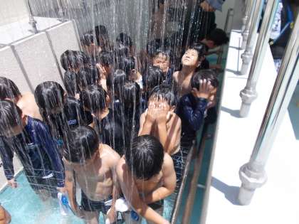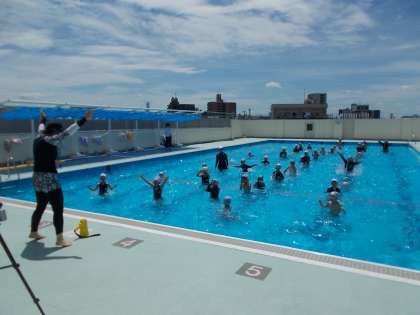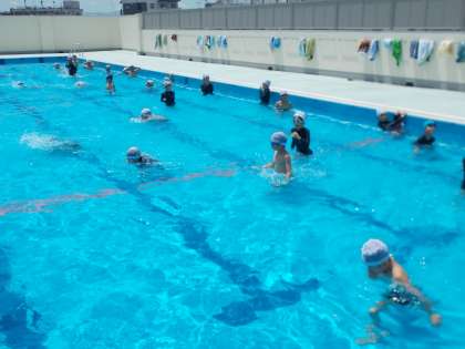 水の中で、鼻から息を出したり、「パッ」と声に出してみたり、ふし浮き、バタ足などの練習をしました。