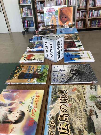 5,6年生は、被爆体験伝承者の方の講話を聞きます。その前に辻先生が戦争の本を読んだり、展示したりして子どもたちに戦争について考えることができるように用意してくださっています。