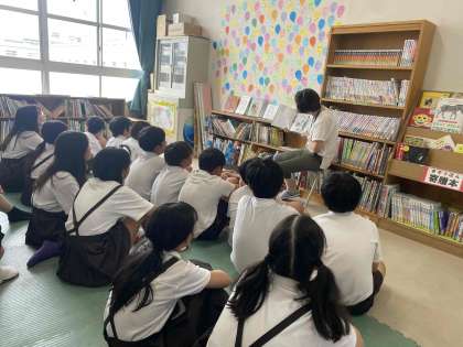 12歳の女の子が原爆症で亡くなるとても悲しいお話でした。図書室は読み聞かせをする辻先生の声だけが聞こえていました。