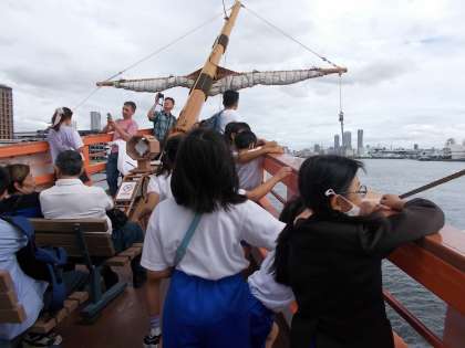 自由時間には、気の合う友だちと一緒に船内デッキへ移動したり、海の風を受けて気持ちよさそうな表情を浮かべていました。