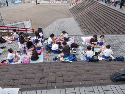 船を楽しんだ後は、海遊館の近くでお弁当を食べました。