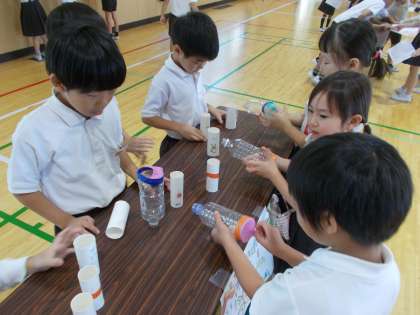 1年生は、おもちゃの遊び方の説明を聞いて、何度も練習しながら楽しんで遊んでいました。