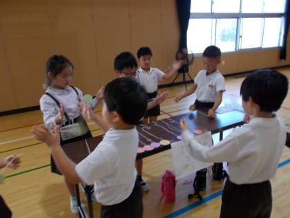 どの子も嬉しそうに取り組みました。終わりには、2年生からぴょんぴょんがえるのお土産をもらいました。