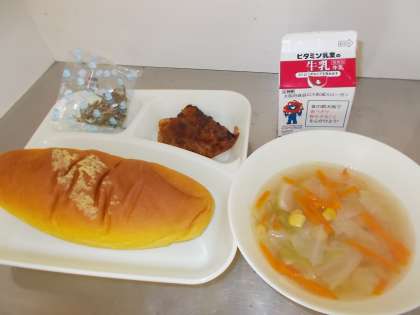 先生「コッペパンにかぼちゃをペーストにしたものをまぜてるよ。」