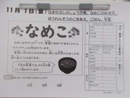1年「なめこのぬるぬるが苦手やったけど、お口の中に入れたら、おいしかったわ。」