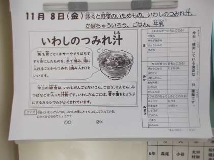 先生「そうですね。いわしを骨ごと一緒にすり身にしていますよ。骨や歯が強くなるよ。」