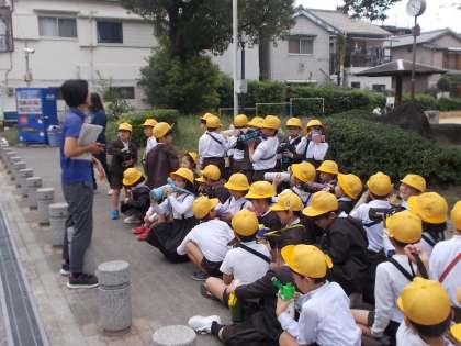 帰校後、撮った写真を見ながら振り返りました。病院、飲食店、工場など、いろんな建物を発見しました。
