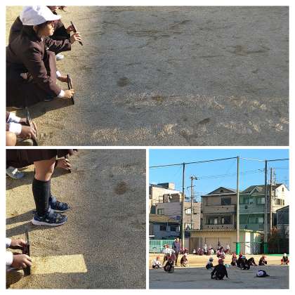 みんなで一斉にすると、自分が反射させた光がどれなのかが分からず‥‥しかし中には、自分の足の近くから地面をなぞって壁に向けていった子も見られ、考えながら実験することができました♪