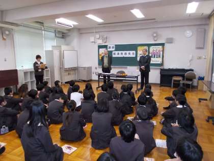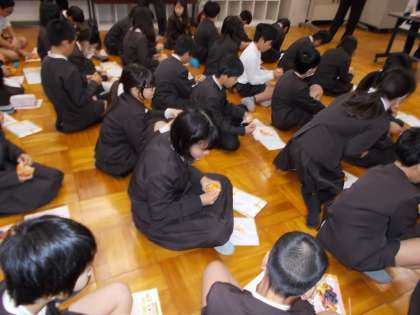5・6年生の出前授業で講師の先生をお招きし、日本の果物について講師の先生から学びました。