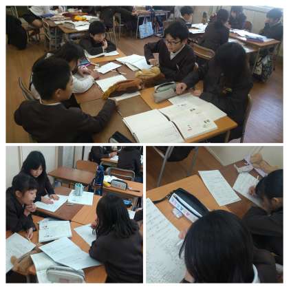 子どもたちは、気になったテーマについて質問項目を考え、クラスみんなにアンケートを取りました。班になってワイワイ‥先日の学習参観でも、発表していたグループもありましたね。