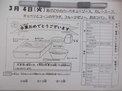 今日は卒業祝い献立でした。いつもより品数も多く、ボリュームいっぱいでした。