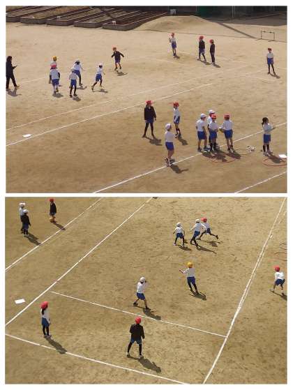 白線でコートを描いて、ミニゲームをしていますね。