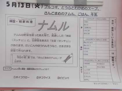 ごま油の風味が効いたおいしいナムルでしたね。