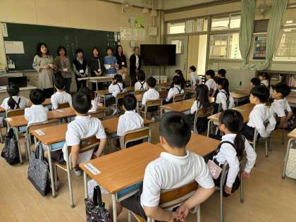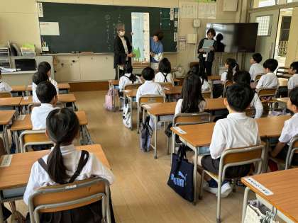 1年生と2年生は、毎週火曜日お話ボランティアの「おはなし すまいる」さんによる読み聞かせがあります。1年生にとっては今日が初めての日でした。