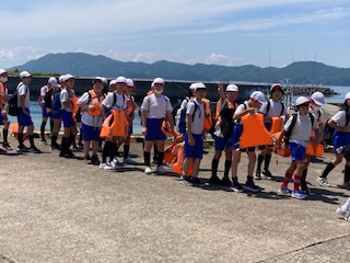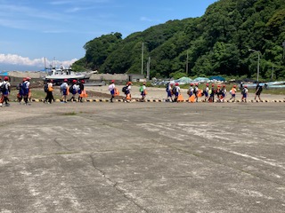 暑いです。一旦ライフジャケットを脱いで移動します。