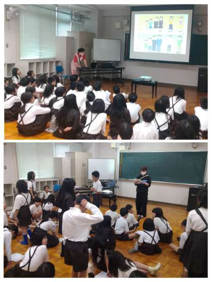 前日となる今日は、スペシャルゲストとして保健室から養護教諭が来ていただき、みんなの「心と体」について、プロジェクターを使ってお話してくれました。