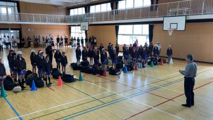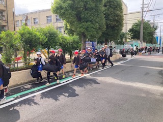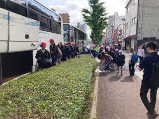 児童52人全員、付き添い職員等7名の59人で自然体験学習に行ってきます。