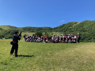 ハチ高原は、このモニュメントが有名です。おそらくどこの学校もここで写真を撮るんじゃないでしょうか。クラスごと、そして学年でも撮りました。