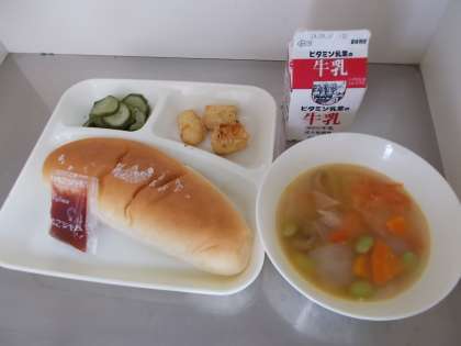 今日は、熊本県産の生のトマトをいちょう切りにして使ったスープ煮でした。