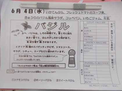 6年生「スープ、とってもおいしい〜!」と大好評でした。