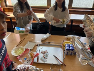 2枚目のアルミ箔はふわっと巻きます。そして牛乳パックに入れて完成。今日の燃料は牛乳パックです。