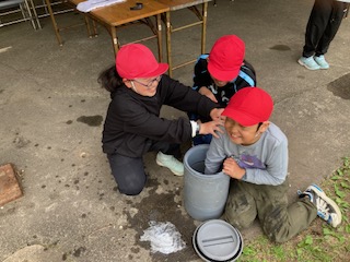 アイスクリーム作りに使った塩水、マイナス10度から18度くらい。これもいい体験です。