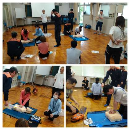 DVDを視聴したり、人形を使って心肺蘇生法を学んだりしました。