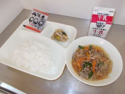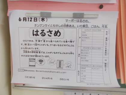 先生「ちゃんとおわんを持って食べると、はるさめもひきにくも、ちゃんと食べられるよ。」