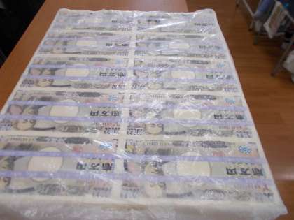 最後に1億円の疑似札束(疑似1万円札が1万枚)・・・約10キログラムをかかえる体験をしました。