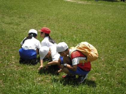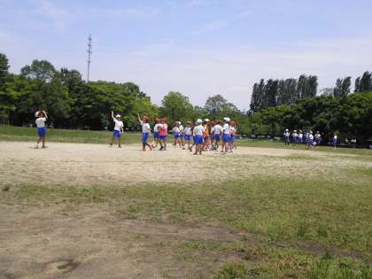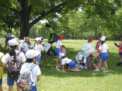 待ちに待ったお弁当タイムです。貸切状態でした。木陰は涼しくて寒いくらいでした。食事が終わったら,ドッジやクローバー探しで遊んでいました。