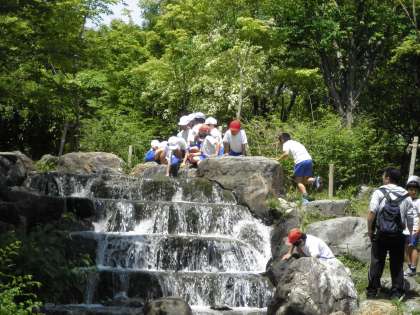 滝やせせらぎのある水辺もありました。オリエンテーリングの表彰もしました。
