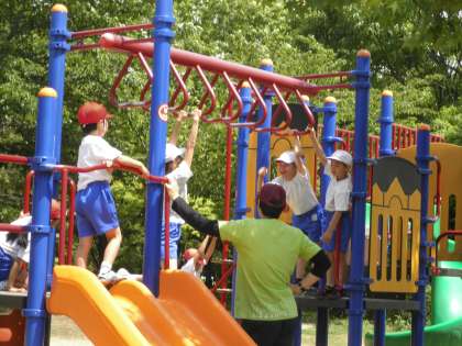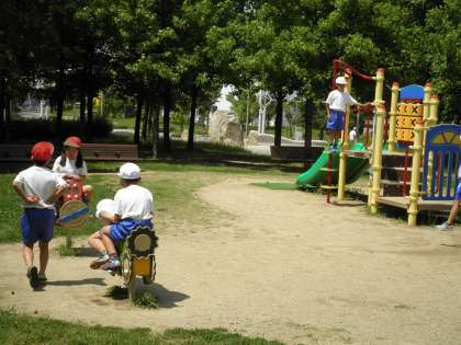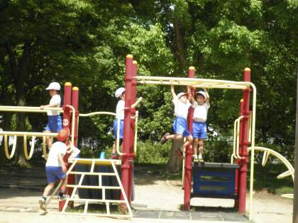 次は子どもの国です。遊具で自由遊びをしました。3歳〜6歳用の乗り物にも乗っていました。