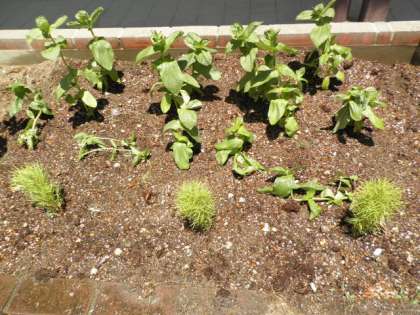 何かわかりますか。地域の方から苗をいただいたので、給食室前花壇に植えました。