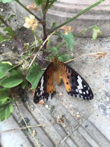 綺麗に羽化しました。羽の端っこが黒いヒョウの模様のチョウです。