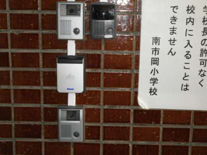 子どもの背丈でも届くように、学校用のインターフォンを新設しました。上下どちらを使っていただいても、職員室につながります。いきいき用は今までと変わりません。
