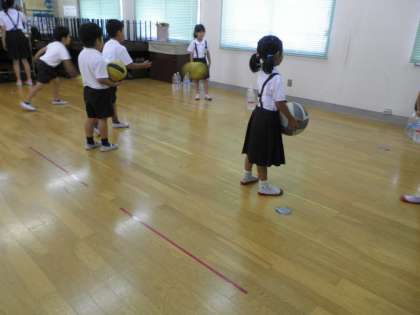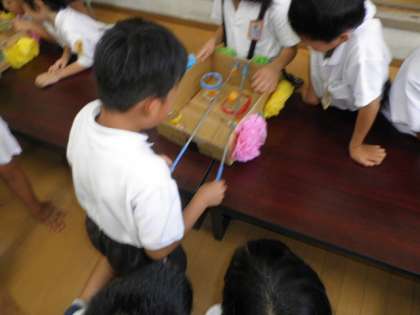 音楽室:5班ペットボトルボーリング  こばと教室:7班ボールの試練