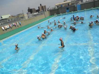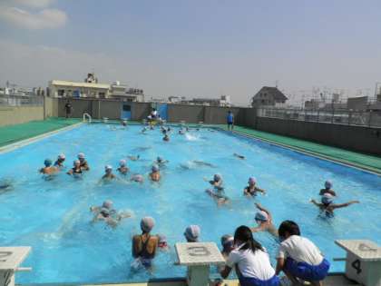 2学年ずつプールに入り、学年に応じて1学期の水泳学習のまとめをしました。この写真は3,4年生です。見学者も「たからさがし」ゲームのお手伝いをしました。