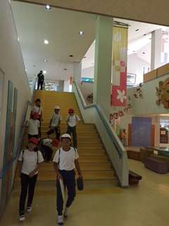 斜面に沿って建てられているので階段やスロープが沢山あります