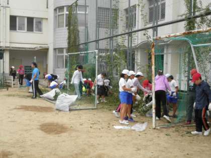 全校で草引き、石拾いをしました。運動会に向けて、安全できれいな運動場の準備を進めています。