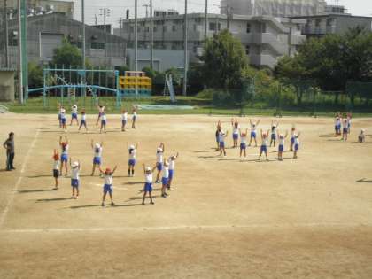 きれいな隊形で、ダンスをします。タイミングを合わせるのが難しいところです。