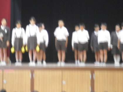 次に打楽器の紹介をして、「いろんな木の実」を歌いました。4年生の歌声と打楽器の音色がきれいに響いていました。