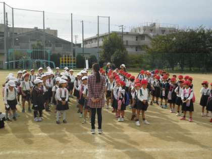 さわやかな秋晴れの朝、子ども達は嬉しそうに集合して大阪城公園へ出発しました。