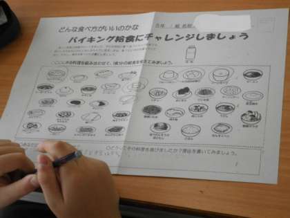 2時間目に5年生が「食の学習」をしました。他校から栄養教諭の先生が来てくださり、「どんな食べ方がいいかな」というテーマで、主食・主菜・副菜を考えてバランスよく食べる学習をしました。