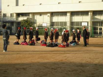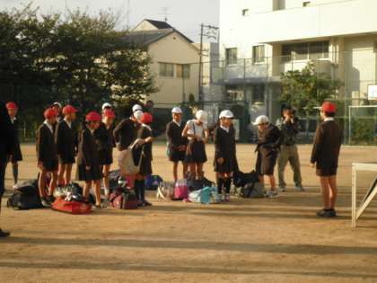 晴天に恵まれました。6年生が大きな荷物を持って集合しました。元気な声であいさつをして出発式をしました。