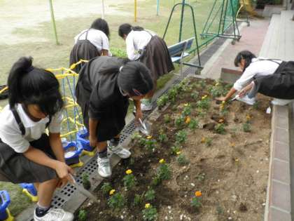 花と緑の農芸財団から花の苗をいただきました。「花の輪運動」へ応募し、2798校の中から当選!!!