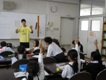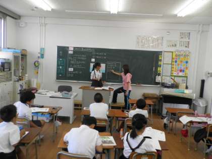 学級を二つに分けて、小数の学習を進めています。事前に授業の進め方を十分に打ち合わせをして進めています。
